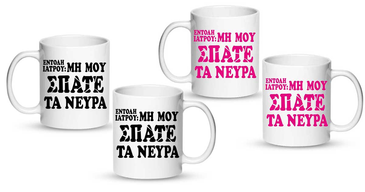 Διάλεξε την Μην μου σπάτε τα νεύρα Κούπα ή εκτύπωσε το θέμα σου ή την αφιέρωση σου.